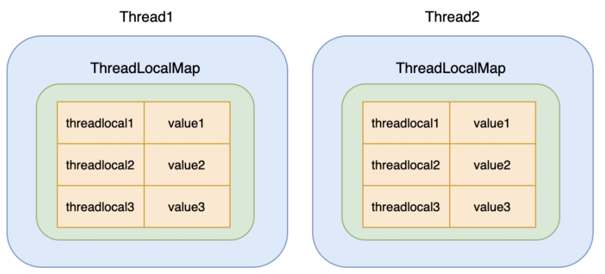 需要在每个线程的本地都存一份值,说白了就是每个线程需要有个变量,来存储这些需要本地化资源的值,并且值有可能有多个。在线程对象内部搞个map,把 ThreadLocal 对象自身作为key,把它的值作为 map 的值。这样每个线程可以利用同一个对象作为key,去各自的map中找到对应的值。